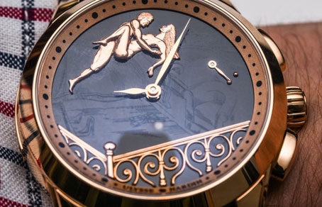 Чем же шокировала публику такая новинка? На циферблате часов изображена эротическая картинка. Но мастера решили не шокировать публику, и несколько скрыли такое изображение. Увидеть его можно лишь тогда, когда происходит быстрое вращение механизма. Развить скорость можно путем активного движения руками.